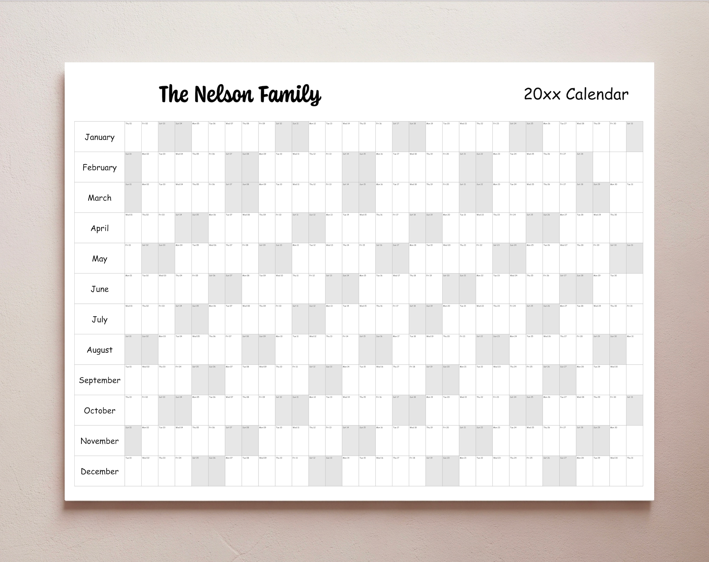 Full Year Wall Calendar